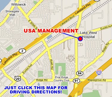 | USA Management is a full service commercial property management company headquartered in Willoughby Ohio . We have for lease office space throughout Lake County and Medina County in the cities of Mentor, Mentor-on-the-Lake, Willoughby, Eastlake, Concord, Painesville, Brunswick, and Kirtland, Ohio . USA Mgt. also has for lease retail space in Lake County and Medina County in Mentor, Mentor-on-the-Lake, Willoughby, Eastlake, Concord, Painesville, Brunswick, and Kirtland, Ohio, and Tampa, Florida . We have Land for sale throughout Lake County in the Cities of Mentor, Mentor-on-the-Lake, Willoughby, Eastlake, Concord, Painesville, Brunswick , and Kirtland, Ohio . USA Management has doctor's offices and medical space for lease in Lake County in Willoughby, Mentor, and Concord, Ohio . In addition, we have industrial space for lease in Lake County in Willoughby, and Mentor, Ohio . | ||||